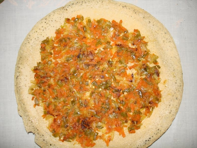 - Add the vegetables on the top of the Dosa and cook both sides of the dosa.